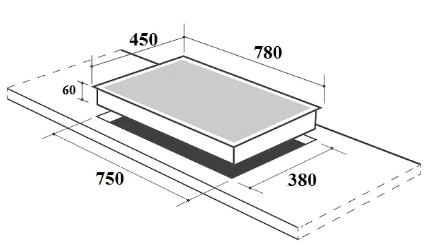Kích thước khoét đá: 750x380mm