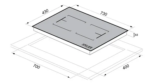 Kích thước bếp (DxRxC): 730 x 430 x 55 mm