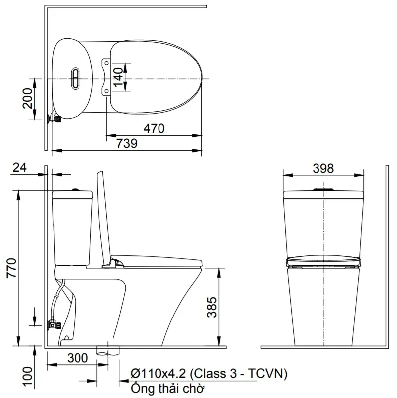 Bản vẽ bệt inax AC 700 nắp điện tử CW-H18 VN