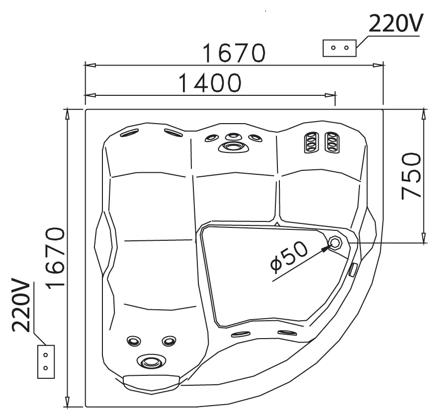 • Kích thước: 1670 x 1670 x 780 mm (D x R x C)