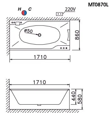 - Bồn tắm nằm MT0870L/R Caesar 1.7M được sản xuất trên dây chuyền công nghệ hiện đại của Đài Loan.