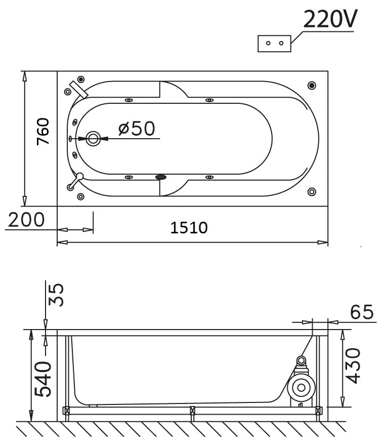 Bản vẽ kỹ thuật bồn tắm dài Caesar MT0150 1,5M