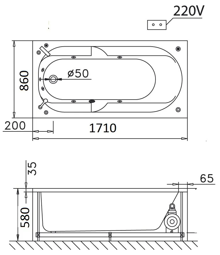 Bản vẽ kỹ thuật bồn tắm dài Caesar MT0570 1,7M
