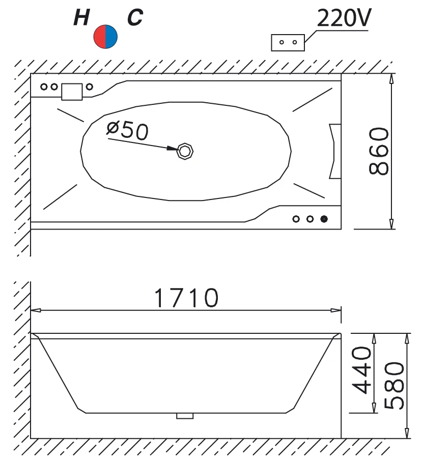 Bản vẽ bồn tắm massage xây Caesar MT0870
