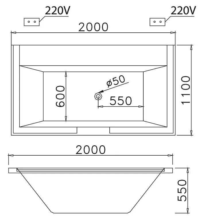 - Kích thước: 2000 x 1100 x 550