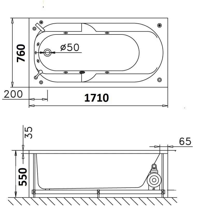 Bản vẽ kỹ thuật bồn tắm dài Caesar AT0670 1.7M