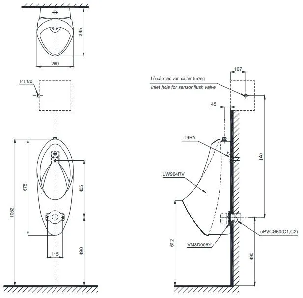 Bản vẽ bồn tiểu TOTO UT904RXW