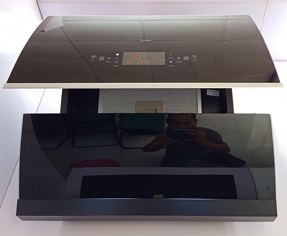 Máy hút mùi gắn tường, kiểu dáng kính vát nghiêng cong