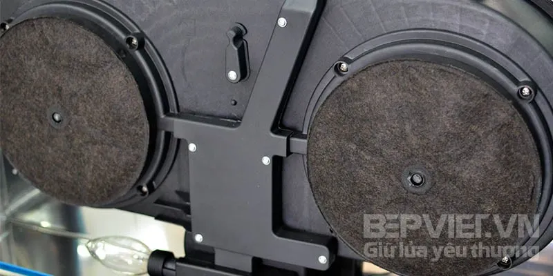 Bao ngoài tấm lưới lọc là tấm thép lớn. Sở dĩ máy được thiết kế vậy vì lớp thép cứng, chắc chắn sẽ bảo vệ lưới lọc bằng nhôm bên trong cũng như tránh các tác động cơ học, ảnh hưởng đến lưới lọc. Tuy nhiên bạn cần vệ sinh định kỳ lưới lọc để đảm bảo hiệu quả sử dụng. Đèn Halogen 2 bóng cung cấp đủ sáng khi nấu nướng.