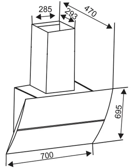 Máy hút mùi gắn tường, kiểu dáng kính vát nghiêng cong